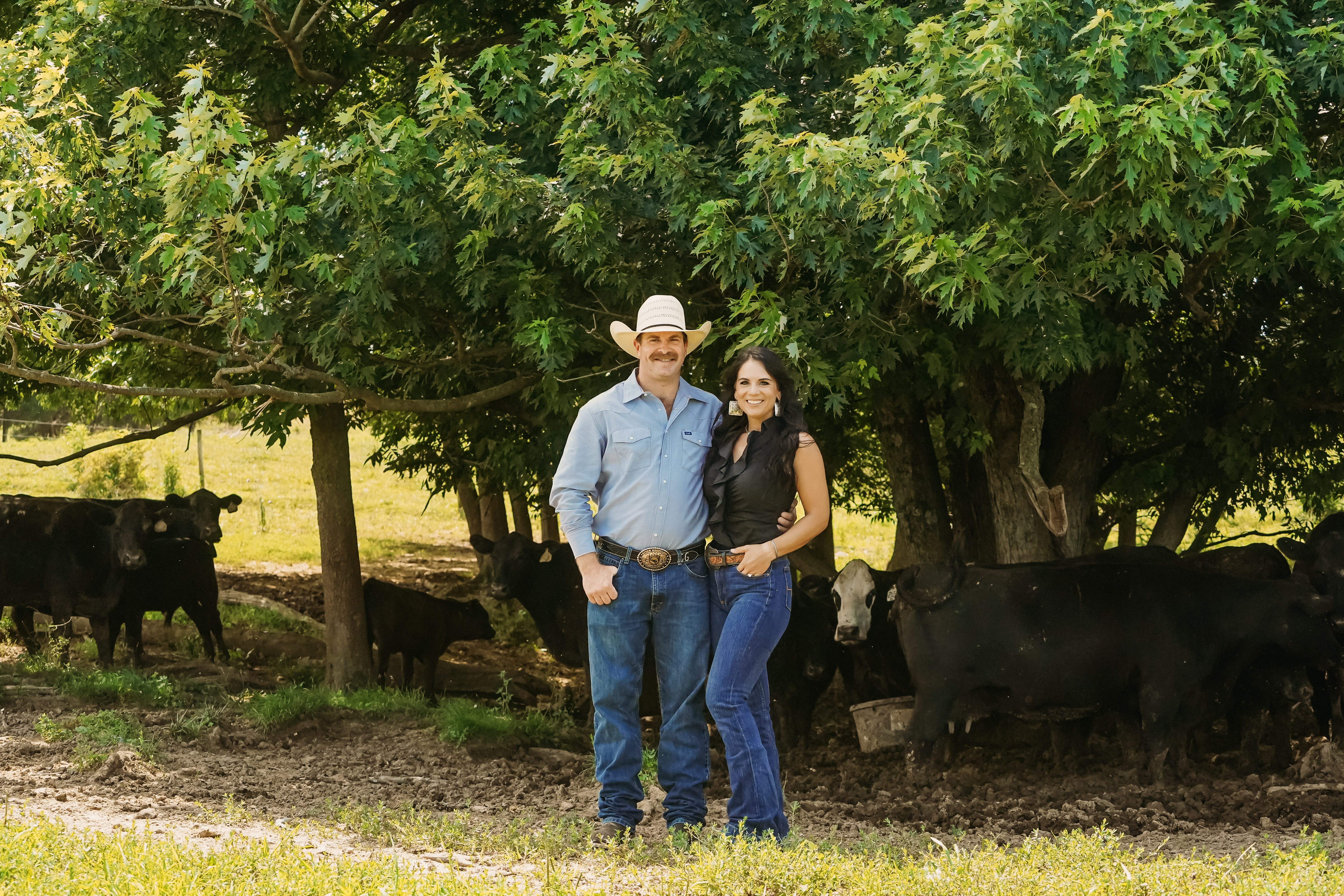 Cody’s journey began in the rodeo world, where he learned the grit of being self-employed. After meeting his wife Katelyn, whose family raised cattle and row crops, he turned his longtime dream of running cattle into reality. Today, he markets more than 1,400 head of cattle through Superior Livestock, where he also serves as a sales representative helping local producers trade and sell cattle through well-established markets.